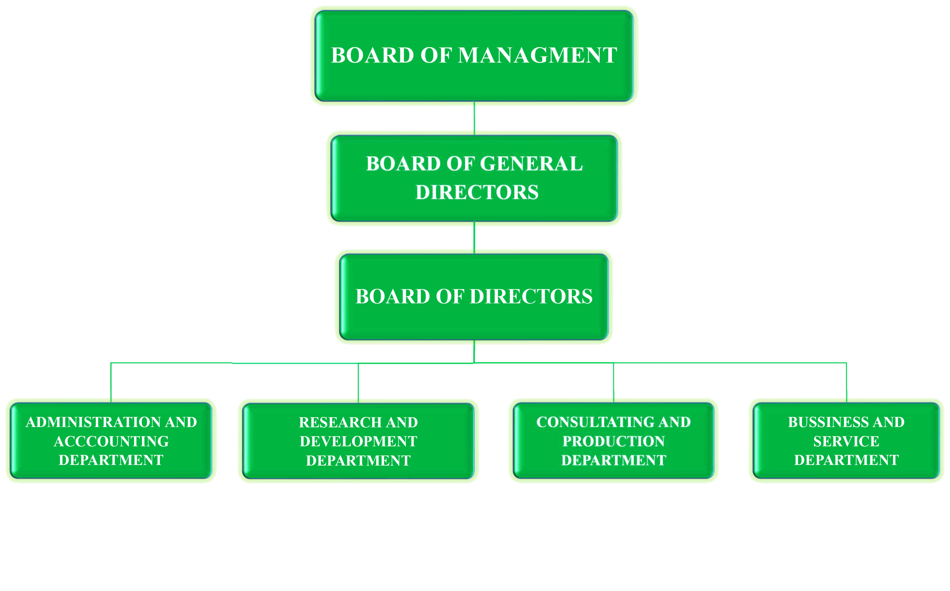 - Project Consulting Department: performs the work of supporting connections, promoting consulting on programs and projects; bidding and contract work. The Head of Project Consulting Department is authorized to sign on behalf of the quotation of products and services after the Board of Directors has agreed on the content.